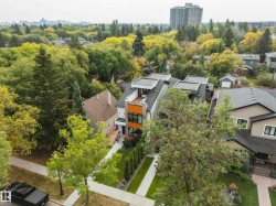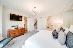 This 2,305 sq. ft. 2.5-storey stunner sits in Edmonton’s most coveted neighbourhood—GLENORA & features a total of 4 beds, 4 full baths & 2 half baths. Designed for modern living, it blends minimalism, comfort, & elegance with striking glass details throughout. The main floor showcases an open layout anchored by a 13-ft quartz island, complemented by a premium stainless steel appliance package. A floor-to-ceiling glass wine wall highlights the dining area, while an open-riser staircase encased in glass adds architectural flair. Upstairs, the primary retreat impresses with sliding glass barn doors leading to a spa-inspired ensuite with freestanding tub & custom shower. Two additional bedrooms, each with ensuites, plus handy same-level laundry complete this floor. The third level offers an urban lounge with seamless access to an indoor/outdoor rooftop patio boasting skyline views. Fully finished basement has rec area & 4th bed/bath. Built in sound + minutes from the River Valley, Ice District, and downtown.