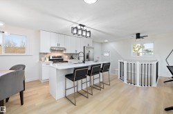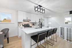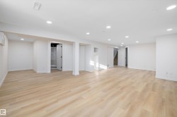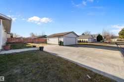 Welcome Home! This fully renovated bungalow sits on a MASSIVE large corner lot, offering ample space and privacy. Inside, the main floor has 3 well-appointed bedrooms, with the primary featuring a 2-piece ensuite. The open floor plan seamlessly connects the kitchen and living room, creating a bright, welcoming space ideal for everyday living & entertaining. Stainless steel appliances, upgraded lighting, and modern touches throughout elevate the design, while luxury vinyl plank flooring & fresh paint in every room provide a clean, contemporary feel. Downstairs, is an additional bedroom with a 3-pc bathroom, large rec room, and laundry/utility room add flexibility for guests, hobbies, or storage. Step outside to a double detached heated garage and an extra-large driveway with plenty of room to park an RV. Located just steps from the Anthony Henday, with parks, schools, and shopping all close by, this home combines comfort, style, and convenience in a quiet family friendly neighbourhood.