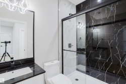 Located in Fraser, this new 2,775+ sq ft home offers a modern living experience. It features a living area with vinyl plank flooring, vaulted ceilings, and a fireplace. The kitchen features a spice kitchen, a large island, and quartz countertops. Premium fixtures are included throughout. The main floor has a bedroom and a full bathroom. Upstairs, discover four bedrooms, including two master suites with walk-in closets and en-suite bathrooms, plus an additional living room. The property includes a generous backyard, a double garage with ample driveway space, and completed fencing and landscaping. Conveniently located near schools, highways, and transit, making it ideal for families and commuters.
