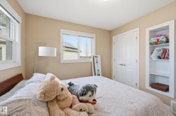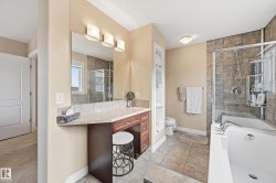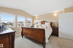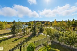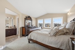 Welcome to this stunning custom-built property offering over 2,700 sqft of beautifully finished living space on a wide lot. From the moment you step inside, the spacious foyer sets the tone for this warm and inviting home. The open-concept main floor seamlessly connects the living room, dining area, and kitchen—flooded with natural light and framed by expansive lake views through thoughtfully added windows. Upstairs, a bright hallway leads to a large bonus room overlooking the pond, two spacious bedrooms, and a luxurious primary suite with a walk-in closet and a serene ensuite. The fully finished basement offers a generous rec room with a wet bar, full bath, and additional bedroom. Outside, enjoy your massive two-tiered deck—perfect for BBQs, gatherings, or simply relaxing with lakeside views. The landscaped yard features irrigation, a retaining wall, and direct access to walking trails. An oversized garage and access to Chapelle’s recreation center complete this perfect package.
