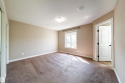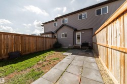 The perfect starter home in a desirable community with NO CONDO FEES. 3 bedrooms, 2.5 bathrooms, double detached garage, fully finished and fenced yard. This home has everything you need, just move in and enjoy. Large open main floor layout. Light colors, vinyl floor in living room, new baseboards. L-shaped kitchen with a large island, tiled backsplash, all stainless steel appliances. Upstairs features 3 large bedrooms, a 4 piece bathroom and an additional 4-piece ensuite. BONUS Air conditioning for those hot summer nights. Basement is unfinished with wide open layout full of potential. Nice low maintenance private backyard with a double detached garage. Close to public transit, schools and other amenities.