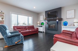 Situated on a HUGE PIE LOT is this GORGEOUS family home! Fronting the pond and trees in one of north Edmonton's most desirable communities! Open concept design offering nearly 2400 sq ft plus a FULLY FINISHED basement! Loaded with natural light and featuring a stunning kitchen with an abundance of custom cabinetry, stainless steel appliances, walk-through pantry and beautiful countertops. Large windows, generous dining area and a spacious living room with hardwood floors & attractive gas fireplace. Main floor flex room/office and powder room. Upstairs is a big Bonus Room, 3 bedrooms, laundry room and a 4 piece bathroom. Vaulted ceilings in the Primary Bedroom, walk-in closet and a LUXURIOUS "SPA-LIKE" ENSUITE! The basement boasts a massive family room, wet bar, 4th bedroom, 4 piece bathroom, utility room & storage space. BEAUTIFUL BACKYARD! Two-tiered deck and stamped concrete patio. Central AC, hot water on demand, and a HEATED GARAGE! Outstanding value!! Visit REALTOR® website for more information.
