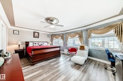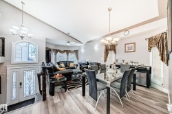 Welcome to this well-kept, custom-built home Bilvel home, With over 3,700 sq. ft., it offers 7 bedrooms, 5 bathrooms, and several living areas, making it ideal for large or multi-generational families.The main level features an open-to-below entry, 4 bedrooms and 3 bathrooms, two dining areas, two living areas, and an extended kitchen with granite countertops and plenty of cabinetry. Vinyl and ceramic tile finish the space, with ceramic tile in the primary bedroom, Jack and Jill bathroom, and two additional bedrooms.The basement includes two separate living areas developed without permits. One has two bedrooms, a kitchen, and a full bath. The walkout illegal suite includes one bedroom, a full bath, and a bar with rough-ins for a stove and fridge, along with shared laundry and storage.Extras include a tankless water heater, central air, water softener, water purifier, Insinkerator, side entrance, rough-in for central vac, custom blinds, high basement windows without window wells, and ceiling fans.