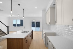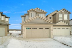 Welcome to the “Columbia” built by the award winning Pacesetter homes and is located on a quiet street in the heart of north Edmonton This unique property in Cy Becker offers nearly 2200 sq ft of living space. The main floor features a large front entrance which has a large flex room next to it which can be used a bedroom/ office if needed, as well as an open kitchen with quartz counters, and a large walkthrough pantry that is leads through to the mudroom and garage. Large windows allow natural light to pour in throughout the house. Upstairs you’ll find 4 large bedrooms and a good sized bonus room. This is the perfect place to call home. This home also has a side separate entrance perfect for a future basement suite. This home is now move in ready!