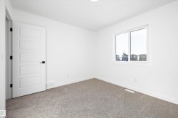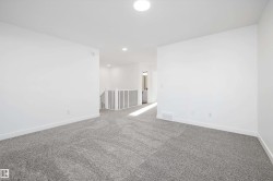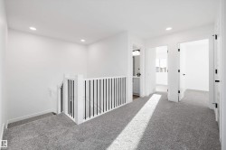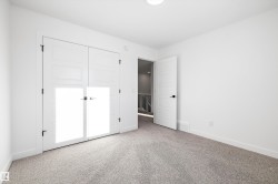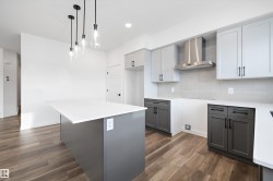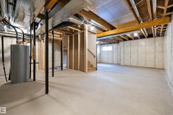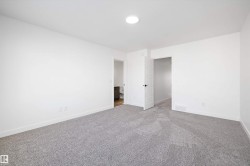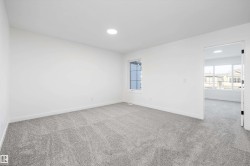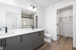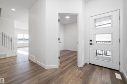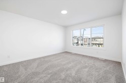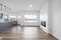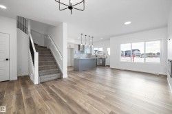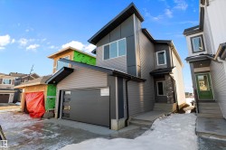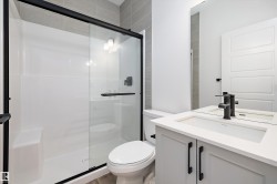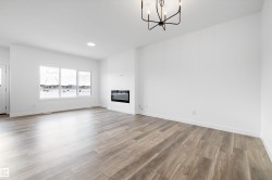 Experience refined contemporary living in the Apex, a masterfully crafted four-bedroom residence designed for longevity and style. This Sterling Signature home features soaring 9' ceilings on both the main and basement levels, a double attached garage with floor drain, and a separate side entrance. The versatile main floor showcases luxury vinyl plank flooring and a rare secondary bedroom adjacent to a full three-piece bathroom with a walk-in shower. At the heart of the home, the gourmet kitchen boasts quartz countertops, a flush-ledge island, Winston-profile soft-close cabinetry, and a chimney-style hood fan. Natural light fills the open-concept great room, highlighted by a modern fireplace and large windows. Upstairs, the primary retreat features a five-piece ensuite with dual sinks, a soaking tub, and a glass-enclosed shower leading to a massive walk-in closet. A central bonus room, upstairs laundry, and brushed nickel accents complete this exceptional move-in ready package.
