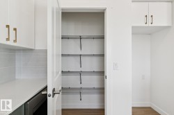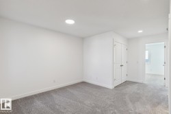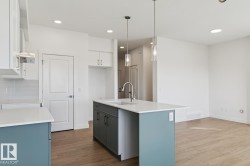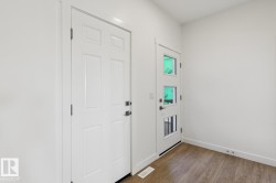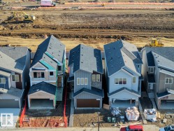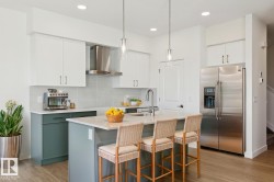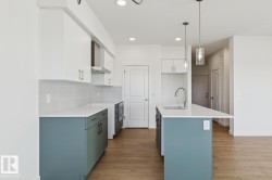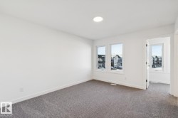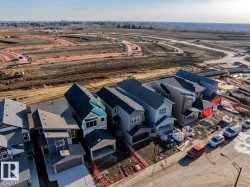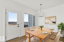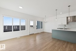 Welcome to the Ascend 22 by Sterling Homes, a well-designed home offering modern finishes and practical living. The main floor features luxury vinyl plank flooring, 9’ ceilings, and a welcoming foyer with large coat closet and access to the double attached garage with floor drain. The bright open-concept kitchen, great room, and nook include quartz countertops, island with flush eating ledge, Silgranit undermount sink, built-in microwave, full-height tile backsplash, chimney-style hood fan, soft-close Thermofoil cabinetry, and corner pantry. Large rear windows and a garden door bring in natural light, with an electric fireplace anchoring the great room. A convenient half bath completes the main level. Upstairs offers a primary suite with walk-in closet and 4-piece ensuite with double sinks and glass shower, plus a bonus room, main bath, laundry, and two additional bedrooms. Separate side entrance, brushed nickel fixtures, and basement rough-in complete the home.