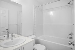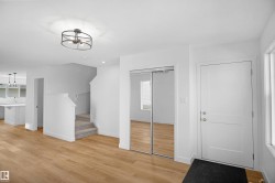 NO CONDO FEES, SEPARATE ENTRANCE and AMAZING VALUE! You read that right welcome to this brand new townhouse unit the “Manhattan” Built by the award winning builder Pacesetter homes and is located in one of Edmonton's newest premier west end communities of River's Edge. With over 1400+ square Feet, this opportunity is perfect for a young family or young couple. Your main floor is complete with upgrade luxury Vinyl plank flooring throughout the great room and the kitchen. Highlighted in your new kitchen are upgraded cabinets, upgraded counter tops and a tile back splash. Finishing off the main level is a 2 piece bathroom. The upper level has 3 bedrooms and 2 bathrooms. This home also comes completed with front and back landscaping. *** This home is under construction and will be complete by February 2026 , photos used are from the same model recently built but colors may vary ***