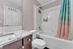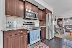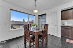 Welcome to this beautifully maintained duplex in the sought-after community of Laurel, featuring a finished basement with a second kitchen—perfect for extended family or added versatility. This home offers a seamless blend of comfort, style, and functionality. The main floor includes a spacious living room, modern kitchen with stainless steel appliances, extended granite island, ceiling-height cabinets, stylish backsplash, a bright dining area, and a convenient half bath. Upstairs, the primary bedroom features a walk-in closet and 3-piece ensuite, along with two additional bedrooms and a 4-piece main bath. The fully finished basement boasts a large bedroom, second kitchen, 4-piece bathroom, and cozy living area. Enjoy summer BBQs on the large deck and benefit from a double detached garage and central A/C for year-round comfort. Ideally located within walking distance to parks, trails, shopping, K–9 and high schools, the Rec Centre, and just steps from a bus stop—a perfect home for first-time buyers.