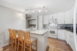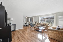 Welcome to Country Gardens, a desirable 40+ community offering resort-style living with a pool, hot tub, sauna, fitness area, private sun deck & community garden. Unit 204 is a spacious well maintained 2 bedroom +den, 2 bathroom home with 1457sf of bright south-facing living space. Enjoy the carefree lifestyle in this non-smoking, no-pet home shared w/only one neighbor per corridor. Upgrades within the most recent years include: furnace, A/C, paint, flooring, kitchen (newer appliances, backsplash, cabinets, granite sinks), bathrooms, lighting & built-ins. Kitchen offers plenty of storage cabinets & prep counters. Oversized dining nook will seat 10. Living area w/direct access to balcony. Den is perfect for hobby studio/home office or 2nd lounge area. Condo fees include all utilities & 2 parking stalls. Prime location near parks, Whitemud, Fort Edmonton, River Valley trails & all servicing amenities Riverbend has to offer. A must-see in a vibrant, close-knit community! Furniture is negotiable with sale.
