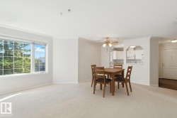 Discover the comfort and tranquility you’ve been searching for in this 50+ adults-only building. This bright and inviting 2-bedroom, 2-bathroom corner unit offers peaceful northeast views of the greenspace, perfect for enjoying your morning coffee. Inside, you’ll find a spacious living and dining area, a well-designed kitchen, in-floor heating, newer carpet, and the convenience of in-suite laundry. Enjoy a quiet lifestyle with easy access to the building’s amenities, including an exercise room and craft space. Your heated underground parking stall comes with a secure storage cage, and a car wash bay for added convenience. Designed for those who appreciate a safe, quiet, and low-maintenance lifestyle, the building is professionally managed, has a healthy reserve fund, and is extremely well kept - this home is ready for you to move in and enjoy!!