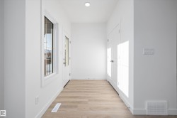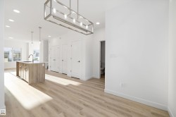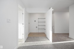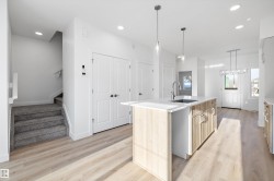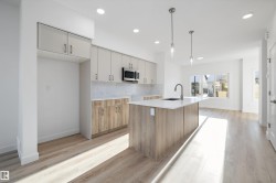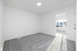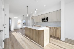 Discover The Sylvan, a bright and inviting home offering stylish finishes and flexible living spaces. The main floor features luxury vinyl plank flooring, 9’ ceilings, a welcoming foyer with walk-in coat closet, and a sun-filled great room. The kitchen showcases quartz countertops, a large island with eating ledge, soft-close Thermofoil cabinetry, over-the-range microwave, and a tucked-away pantry. A rear nook overlooks the backyard and is complemented by a main-floor bedroom, full 3-piece bath, and garden door to the outdoor space. Upstairs offers a spacious primary retreat with walk-in closet and ensuite, two additional bedrooms, a full bath, and laundry. Includes parking pad with option for detached double garage, separate side entrance, and basement rough-ins—ideal for future development.