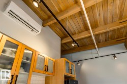 Step inside one of Edmonton’s rarest lofts — a top-floor corner unit in the historic 1929 John Deere Warehouse, reimagined by DUB Architects as Seventh Street Lofts. 945 sqft of wide-open living with soaring 13 ft fir-beam ceilings, exposed brick, and massive south + east windows that pour in natural light. Industrial character meets modern upgrades: imported porcelain tile, fresh paint, a sleek renovated 4-piece bath, and brand-new A/C. The kitchen’s stainless appliances and island are built for gathering, while the private bedroom with full wardrobe keeps life organized. This loft doesn’t box you in — it flexes with your lifestyle. In-suite laundry, your own parking stall, and bylaws that welcomes Airbnb mean freedom, not restrictions. In the heart of downtown’s Ice District, steps to MacEwan, cafés, the farmers market, nightlife, and the future LRT, this isn’t just a loft. It’s a piece of Edmonton’s story, built for the way you actually live.