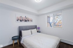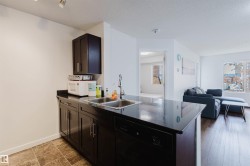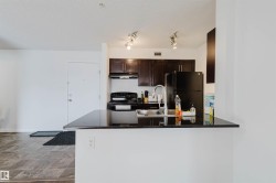 Welcome to Heritage Landing! This spacious and functional condo is perfect for both living and investing. It features two large bedrooms, two full bathrooms, and an open area for a home office. The bright open-concept layout includes espresso cabinetry, granite countertops, an eating bar, laminate flooring, and in-suite laundry. Enjoy a south-facing balcony facing green space and a titled underground parking stall, plus plenty of visitor parking. Located just steps from bus service and half a block from the future LRT expansion, with quick access to shopping, Anthony Henday, Ellerslie Road, Nisku, golf courses, and the Edmonton International Airport. A well-designed unit offering space, comfort, and excellent rental potential.