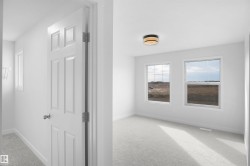 Welcome to the "Willow" built by the award-winning builder Pacesetter homes and is located in the heart of River's Edge and just steps to the walking trails. As you enter the home you are greeted by luxury vinyl plank flooring throughout the great room, kitchen, and the breakfast nook. Your large kitchen features tile back splash, an island a flush eating bar, quartz counter tops and an undermount sink. Just off of the kitchen and tucked away by the front entry is a flex room & 2 piece powder room. Upstairs is the master's retreat with a large walk in closet and a 4-piece en-suite. The second level also include 2 additional bedrooms with a conveniently placed main 4-piece bathroom and a good sized bonus room. The unspoiled basement has a side separate entrance and larger then average windows perfect for a future suite. Close to all amenities and easy access to the the white mud drive and to the Anthony Henday. This home is now move in ready!