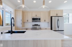 Welcome to Essential Glenridding, where luxury living meets modern convenience! This stunning new 3 BED Townhouse features new designer finishes that will take your breath away. On the lower level, you'll find a convenient single attached garage. As you make your way upstairs, you'll be greeted by the open-concept main floor that offers a half bath and a private balcony perfect for hosting summer BBQs. The kitchen features quartz countertops, waterline to fridge and upgraded cabinets. It's the perfect space to whip up your favourite meals. Head upstairs to discover a laundry room, full 4-piece bathroom, 2 large bedrooms, and a spacious master suite complete with a walk-in closet and luxurious ensuite. The master even comes with its own private balcony, where you can enjoy your morning coffee. This home also comes with a generous 3k appliance allowance and is fully landscaped. Photos may differ from actual property. Appliances not included.