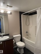 Welcome to this freshly updated unit featuring new paint, brand-new flooring, carpet in both bedrooms, and modern vinyl plank throughout. This 2-bedroom, 2-bathroom home boasts a beautiful balcony and is just minutes away from all your favourite downtown amenities—City Centre, restaurants, LRT stations, the new Epcor Centre, MacEwan University, Royal Alex Hospital, and Rogers Place. Time Square offers a welcoming open-courtyard design, a gas BBQ hookup, an electric fireplace, heated underground parking, and convenient elevator access.