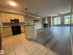 **BRAND NEW VINYL PLANK FLOORING & PAINT" IN THIS TOP FLOOR FULL A/C, PET FRIENDLY, 15-UNIT BUILDING, 1Bdrm & DEN/2nd BEDROOM, 2-FULL BATH Condo with 1169Sq.Ft of Living Space in "THE LANDING 9803!" Upon entry of this 3rd Floor OPEN PLAN Condo with a tiled entryway w/a DEN/2nd Bdrm to the right & a full 3pc BATH! The Kitchen has 5-Black Appliance w/a Raised Eating Bar Island along with a oversized corner WALK-IN PANTRY, & Dining area for 6+Guests w/a 2-SIDED FIREPLACE in the Living Room w/a Garden Door onto your L-Shaped Balcony w/a GAS BBQ HOOKUP Facing SOUTH! The Primary Bdrm has an 18ft VAULTED CEILING w/a WALK-IN CLOSET & A SIDE CLOSET into the 4pc ENSUITE, 6ft TUB/SHOWER. There is 1-Undrground Heated #16 Stall w/a #121 STORAGE CAGE. The complex has an Exercise Room, Woodshop, & Social Room with a 5min walk to the River Valley, Bike Trails, & The Muttart Conservatory & quick BUS or LRT to our Downtown & Beyond. CONDO FEES INCLUDE ALL UTILITIES...ELECTRICITY, HEAT, WATER & SEWAGE, GARBAGE & PARKING!