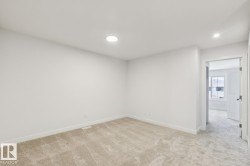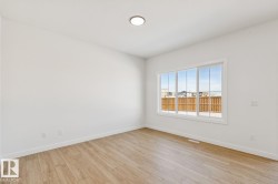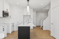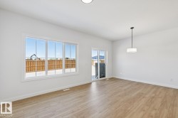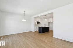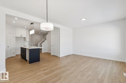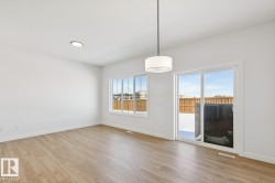 Welcome to this beautifully designed half duplex located in the vibrant & growing community of Alces backing a WALKING TRAIL/GREEN SPACE. Perfectly blending comfort & functionality, this home offers a double attached garage & a SEPARATE SIDE ENTRANCE & 150 amp panel, providing excellent basement suite potential for future income or multi-generational living. Step inside to discover 9-foot ceilings & stylish vinyl flooring that flows throughout the open-concept main floor. The bright & modern kitchen overlooks a spacious dining & living area—ideal for family gatherings & entertaining. The upper level also features three generously sized bedrooms, 2.5 baths, a bonus room, & the convenience of upper floor laundry. The primary suite boasts a walk-in closet & a private ensuite. Located in Alces, a newly developing neighbourhood in southeast Edmonton, you’ll enjoy quick access to shopping, schools, parks, & major roadways, including the Anthony Henday.