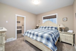 Rare bungalow opportunity built by Coventry Homes in sought-after Walker! The spacious main floor offers a large den, laundry, and a luxurious primary suite with a soaker tub, separate shower, and walk-in closet. The chef’s kitchen features granite counters, a gas stove, and corner pantry, flowing seamlessly into the living room with a cozy stone faced gas fireplace. The finished basement impresses with 9’ ceilings, a family room with a second fireplace, two large bedrooms with full-length closets, and a 4-piece bath. Enjoy outdoor living on the huge 32’x14’ two-tier deck, with a hot tub pad and wiring, 8’x10’ matching shed with workbench, and a gorgeous landscaped yard with poured curbing, backing onto a walking trail. Extras include central A/C, tankless hot water tank, high-efficiency furnace, central vac, built in speakers, and double attached garage. Fantastic location just minutes to shopping, groceries, and EIA, on a quiet local traffic only street.