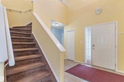 JUST MOVE IN to this FULLY FINISHED HOME, situated on a quiet street, in highly desirable Silver Berry. Offering almost 2300 SQFT of living space, 3 bedrooms, 2.5 bathrooms, this home is perfectly suited for those who desire space & comfort. The functional main floor offers an open concept, including a SPACIOUS KITCHEN w/ stainless steel appliances, LARGE LIVING ROOM w/ gas fireplace & endless natural light. The main floor also comes with a handy 2-pc bath & MAIN FLOOR LAUNDRY! Upstairs you will find 3 LARGE BEDROOMS, including a primary w/ spacious ensuite. Downstairs is a LARGE FAMILY ROOM with room for additional bathroom, bathroom rough-ins & ample storage. The FULLY FENCED & LANDSCAPED backyard comes w/ a HUGE deck w/ gazebo, a greenhouse & mature trees. Enjoy the comfort of a DOUBLE ATTACHED GARAGE! Other upgrades include: HWT (2020), FURNACE (2023) & STOVE (2025). Located within walking distance to schools, shopping, Meadows Recreation Centre & so much more. Take advantage of QUICK POSSESSION!
