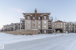 Welcome home to the South Hamptons! This spacious 1042 sq ft 2 BED 2 BATH end/corner unit is extremely well laid out and spacious... Highlights of this open concept unit include a massive laundry/storage room, extremely spacious master bedroom with 4 piece ensuite and walk-through closet, generously sized secondary bedroom and additional 4 piece bath, and patio door off the living room that leads to the large corner balcony. The unit also has in-floor heating, stainless steel fridge & stove and a large eat up breakfast bar. Included are 1 titled underground stall and another titled stall above grade. Perks of the building include a social room, community garden, onsite property management, in-floor heating and heat & water included in the condo fees. Convenient west Edmonton location close to all amenities and easy access to shopping and the Anthony Henday. (Note: The seller will allow the buyer to pick out new/similar replacement carpet from "End of the Roll" which will be installed by the seller)