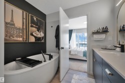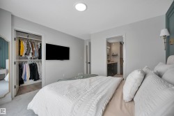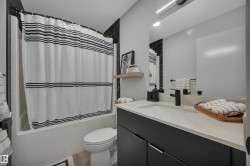Offering over 2,000 sq ft of thoughtfully designed living space, this upgraded 3-storey detached home blends modern design with everyday functionality. A ground-level bedroom with its own ensuite provides ideal space for guests, extended family, or a private office. The entire second level is dedicated to the main living space, featuring a contemporary kitchen with upgraded appliances and sleek finishes, flowing seamlessly into the dining and living areas, equipped with motorized blinds. A striking glass feature wall and open-riser staircase add architectural impact throughout. Upstairs, you’ll find three additional bedrooms, including a spacious primary retreat complete with a spa-like 5-piece ensuite, along with refined finishes and organized closet systems. Finished with a covered balcony, fenced front yard, attached double garage, and water softener, this home delivers elevated living in a desirable southwest community.