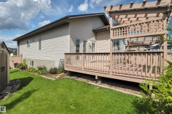 Welcome to this stunning 2004 1,500 sq ft family home nestled on a quiet pie-shaped lot with beautiful landscaping and mature trees. With 4 spacious bedrooms and 3 full bathrooms, there’s room for everyone. The vaulted south-facing living room fills with natural light, creating a warm and inviting space to relax or entertain. The kitchen is a true showstopper, featuring custom cabinetry, a massive island, and plenty of room to gather. Step out onto the oversized deck, perfect for summer BBQs or peaceful morning coffee. The master suite is privately located above the garage, offering a serene retreat complete with a full ensuite and generous closet space. This home is loaded with thoughtful design, comfort, and style, all set on a beautifully treed back yard that adds privacy and charm. A perfect blend of functionality and curb appeal—this one checks all the boxes! Quick possession is available!!