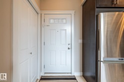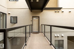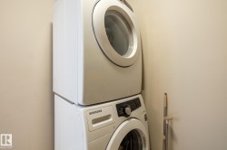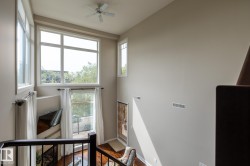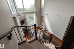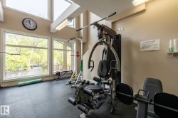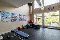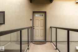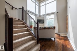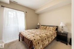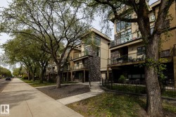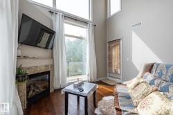 "Grand Scala" in prestigious BELGRAVIA. This rare top floor 2 storey style apartment condo features a gorgeous open floor plan, premium finishings and elegant features throughout, and just a short walk to U of A campus, University Hospital, Edmonton Clinic & LRT station. This south facing 2 bedrooms + den (Possible 3rd bedroom) corner unit has a sun flooded living room w/ soaring windows, gas fireplace and 2 storey high ceilings. Spacious open kitchen w/ upgraded maple cabinetry, stainless steel appliances and nice dining area. Convenient main floor bedroom w/ full bath. Upper floor primary bedroom features 5 pcs ensuite bath, walk in closet & a private balcony w/ fabulous tree top view. Other features include 2 side by side U/G parking stalls, granite counter tops, central A/C, 9 ft. ceilings, extra storage cage & more, Classy & stylish building, car wash, social/party room, fitness center, bike & visitor parking. Luxury & easy care life style in a quiet & convenient University location.