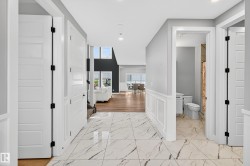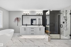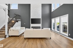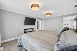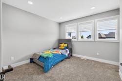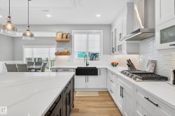 DESIGNED for large or multigenerational families, this exceptional home is FULLY FINISHED on all 3 levels with 8 bedrooms & 5 full baths. The main floor showcases soaring ceilings, dramatic wall of windows, floor-to-ceiling fireplace, elegant wainscoting, chef-inspired kitchen with upgraded cabinetry, under-cabinet lighting, oversized island, walk-through pantry, premium appliances, spacious mudroom, MAIN-FLOOR BEDROOM & FULL BATH. Upstairs offers 4 generous bedrooms, including a luxurious primary retreat w/ double-sided fireplace, jetted soaker tub, private bidet, double shower & custom walk-in closet. The basement, with separate side entrance, is perfect for extended guests and includes a theatre room w/ surround sound, wet bar, 3 additional bedrooms, 5th full bath & laundry rough-in. EXTRAS include central A/C, built-in speakers, water softener, window coverings, large deck w/ glass railings & gas hookup, TRIPLE garage w/ aggregate driveway, beautifully landscaped & steps to trails and Kim Hung School