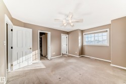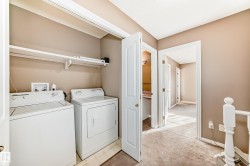 Glorious location just minutes from scenic walking trails and the river valley! The upper level features a spacious primary suite complete with a 4-piece ensuite and walk-in closet, plus two additional bedrooms and convenient upper-floor laundry. The main floor offers a bright, welcoming living room with a cozy gas fireplace, a well-designed kitchen with generous dining space, and direct access to an oversized deck with gas hookup—perfect for entertaining—plus a lower patio for relaxing outdoors. Added perks include air conditioning, a double attached garage, sunny south-facing exposure, fantastic neighbours, and a wonderful, well-managed complex.