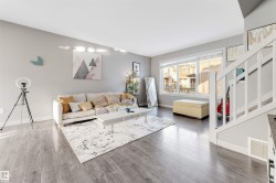 A great home for first time buyers, Move up or Move Down buyers or Smart Investors. This 2 primary bedroom suite layout is sure to impress. One bedroom has a walk in closet and full 4 pc Ensuite with granite counters and the second bedroom has attached bathroom with granite counters and two larger regular closets. Both rooms are spacious and have larger windows. Main floor features corner L-Kitchen with granite counter tops and stainless steel appliances. Basement features the laundry and the double attached garages. The beauty of this particular layout is that both stairs are split and its not steep climb like most townhouses. Close to parks, Manning shopping centers, Transit, Schools and Henday is also within reach. Rich laminate flooring really compliments the paint and brigh interior. Lots of large windows in the front and back and home is very inviting and very well taken care off. Great location for families and young couples looking for their first home. OWN it today.