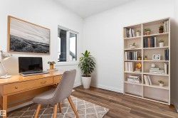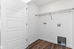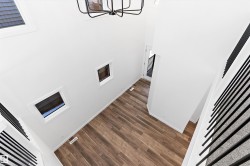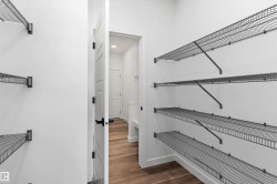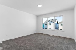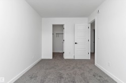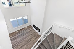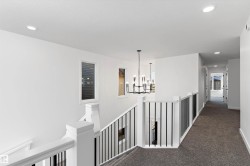 The Artemis is a thoughtfully designed family home featuring 9’ ceilings on the main and basement, a double attached garage with floor drain, separate side entrance, and luxury vinyl plank flooring on the main level. The open-concept kitchen, nook, and great room include quartz countertops, an island with eating ledge, full-height tile backsplash, soft-close cabinetry, built-in microwave, and an electric fireplace with a dramatic 17’ ceiling. The main floor also offers a bedroom, 3-piece bath, and mudroom with walkthrough pantry. Upstairs features a primary suite with a 4-piece ensuite and walk-in closet, plus a bonus room, upper laundry, a main 4-piece bath, and two additional bedrooms with walk-in closets. Includes black fixtures, upgraded railings, basement rough-in, and Sterling Signature Specifications.