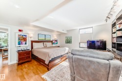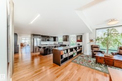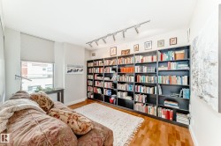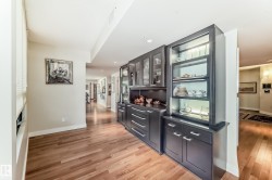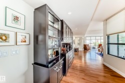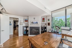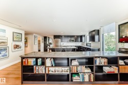 Amazing size 2,749 sq ft of elegance, wine cellar, office, Dream Chef +++ Kitchen for the body and soul unlike any other! Wraparound mature tree views from wall size windows in living and dining rooms— high celings complemented by two balconies—this serene retreat must be seen to appreciate its timeless elegance. Extensive custom cabinetry is perfect for your cherished possessions. The showcase kitchen with endless counters and cabinets plus a temperature controlled wine cellar is perfect for entertaining and opens to a cozy family room with fireplace. A window-wrapped den lined with bookshelves creates the perfect retreat, while the breathtaking primary suite with wall-to-wall custom cabinetry is an oasis of calm. With two additional bedrooms (one currently a library), a serious amount of in-suite storage space, two titled parking stalls, exceptional downtown walkability to all amenities and the river valley steps away, this home perfectly fits the effortless living urban lifestyle you are looking for.