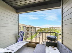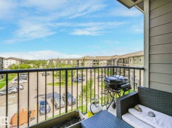 Check out this Quite Top Floor Unit in McConachie! featuring 2 beds, 2baths, A spacious layout with an open concept living room and dining, Upgraded kitchen with granite countertops, stainless steel appliances, laundry room/storage with stackable washer and dryer, 2 titled parking stalls 1 underground and 1 above ground. This unit has been freshly painted, and carpets recently professionally cleaned. You will find that the unit is exceptionally quiet as only one common wall is shared with your neighbor. It is Conveniently situated beside the stairwell exit and underground parking entrance. With easy access to the Anthony Henday, transportation, schools and more. This unit is an ideal choice for those seeking comfort and convenience.
