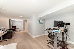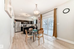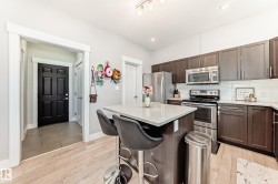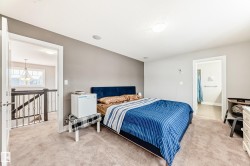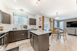 Former showhome END UNIT with a FULLY FINISHED BASEMENT, central air conditioning, and a heated double attached garage, ideally located in Windermere! This upgraded home features an open-to-above foyer and a bright open-concept main floor with engineered hardwood, quartz countertops, stainless steel appliances, a large island with breakfast bar, a walk-in pantry, and built-in speakers that make entertaining so much easier! The dining area opens to the rear deck with beautiful sunset and pond views. Upstairs offers three spacious bedrooms, including a primary suite with a walk-in closet and a five-piece ensuite washroom. The finished basement adds an extra living space. It comes with a family room and another three-piece bathroom, perfect for guests, or extended family. Close to river valley trails, shopping, restaurants, schools, transit, and minutes to Anthony Henday and Whitemud.