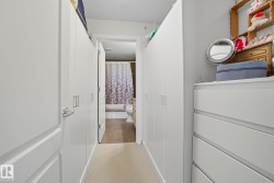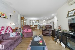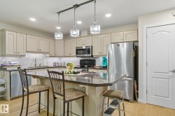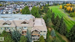 Exceptional top-floor opportunity in The Lodge at Lewis Estates! Situated in a well-maintained 30+ adult building in West Edmonton, this beautifully kept condo offers 2 spacious bedrooms, 2 full bathrooms, 2 titled underground parking stalls (with storage cages), and a titled storage room just steps from your door. The open-concept design feels bright and airy, with air conditioning, hardwood floors, and a balcony with a gas BBQ hookup. The modern kitchen is ideal for hosting, featuring quartz countertops, tile backsplash, stainless steel appliances, and a large island. The generous primary suite includes a walk-through closet and 4-pc ensuite. Huge Second Bedroom, main 3pce bath and laundry room complete the unit. Enjoy top-tier amenities: fitness centre, hot tub, steam room, party & games room, rooftop patios, theatre, car wash, and bike storage. Perfectly located next to Lewis Estates Golf Course, with quick access to the Whitemud, Anthony Henday, and all major shopping.
