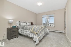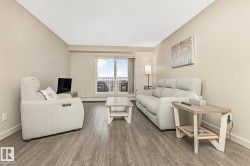 TOP FLOOR condo with TWO Parkings Stalls (1 Underground) & Insuite Laundry. Located in LAKE SUMMERSIDE with year-round access to the Lake amenities such as fishing; Beach; Playground; Tennis; etc. Can it get better than this? Look no further, with sunset views, this 948 SqFt 2 Bedroom & 2 Bathroom unit has an open-concept layout & laminate flooring. Perfect for a 1st time home buyer, young couple or investor! The Kitchen has plenty of cabinets; counterspace & an eat-up bar (New fridge 2024). Relax in the spacious Living room where patio doors lead onto the covered balcony. The Primary Bedroom boasts an Ensuite (W/I Shower; 2 Sinks) & a Walk-through closet. The 2nd bedroom is located next to the 4 piece Bathroom. A Laundry room has space for hiding those items out of sight. No neighbours above or on one side! Amenities include an exercise rm; games rm w. a pool table & a guest suite for out of town family & friends! Don't let this opportunity pass you by. Be part of this amazing community of Summerside