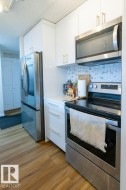 Welcome to this chic TOP FLOOR condo with A/C in sought-after Eaux Claires! This 2 bed, 2 bath home boasts brand-new vinyl plank flooring, fresh paint, and a modern white kitchen with new cabinets, quartz counters, stylish chandelier, and stainless appliances with warranty. The open layout features a cozy living room with gas fireplace and access to a private balcony. Bedrooms are ideally placed on opposite sides for privacy, with the primary suite offering a walk-through closet and 4-pc ensuite. Both bathrooms include new vanities. Enjoy in-suite laundry, extra storage, and a TITLED heated underground stall in a well-managed building with a gym and social room. LOW condo fees (include heat & water) and steps from parks, shopping & transit—perfect for first-time buyers or investors!