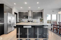 Welcome to this beautifully designed, spacious 2239 sq ft family home offering 4 generously sized bedrooms, 2.5 bath & a double attached garage. The main level showcases soaring 9-ft ceilings, a bright and inviting living area, and a well-appointed kitchen with all appliances, abundant cabinetry, oversized island seating, and a warm dining space, ideal for everyday living & entertaining. A versatile main-floor bedroom with closet, a convenient half bath & seamless access to the fully fenced backyard with a private deck complete this level. Upstairs features a spacious bonus room, a luxurious primary retreat with a walk-in closet & elegant 5-pc ensuite, two comfortable bedrooms, a modern 4-pc bath & a convenient laundry room. The unfinished basement with impressive 9-ft ceilings offers endless future potential. Perfectly located near Costco, grocery stores, schools, parks, ravines, shopping, dining, golf course, bus stop, Clareview LRT & Town Centre, with quick and easy access to Yellowhead Trail.