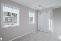 Welcome to this beautifully maintained end unit 2-storey townhouse located in the desirable community of Edgemont, Edmonton. Built in 2016, this modern home offers 1,238 sq. ft. of comfortable living space with a bright, open-concept design. The main floor features a welcoming living room, a stylish kitchen with plenty of counter space, and a cozy dining area—perfect for family gatherings and entertainingas well as a half bath for convenience. Upstairs, you’ll find three spacious bedrooms, including a primary suite with a walk-in closet, plus a full bathroom. The basement offers a huge laundry room and storage area. Enjoy the convenience of a double attached garage and low-maintenance living in this quiet, family-friendly complex. Located close to schools, shopping, parks, and walking trails, this home combines comfort, function, and location in one exceptional package.
