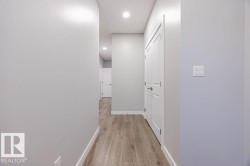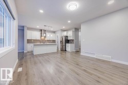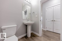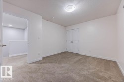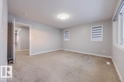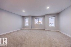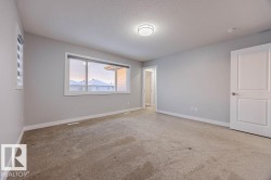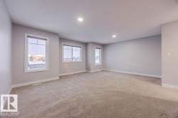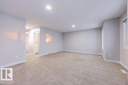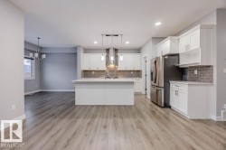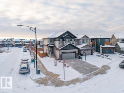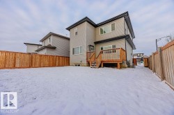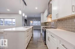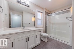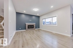 Beautiful 2,107 sq. ft. two-storey home featuring a double attached garage and a separate side entrance to the basement. Ideally located close to schools, parks, shopping, transit, and the Anthony Henday, this home offers both comfort and convenience. The main floor boasts a bright, open-concept design with a dream kitchen complete with a large center island, quartz countertops, stainless steel appliances, an elegant backsplash, and a walk-through pantry. A spacious breakfast nook overlooks the yard, and the inviting living room with gas fireplace creates the perfect space for relaxing. A convenient 2-piece powder room completes the main level. Upstairs, you’ll find three generous bedrooms, including a stunning primary suite with a his-and-her shower and walk-in closet. The upper floor also features laundry and a large bonus room—ideal for movie nights or family gatherings. The unspoiled basement with side entrance offers excellent potential for future development or a secondary suite.