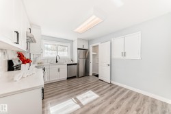Welcome to this stunning bungalow with over 2,000 sq ft of living space! Features 5 bedrooms, 2 living areas, 2 kitchens, and 2 bathrooms. Renovated within the last 1.5 years with new vinyl plank flooring, fresh paint, updated kitchens, countertops, backsplash, bathrooms, doors, and light fixtures. Other updates include shingles (6 yrs), furnace (16 yrs), newer windows, and 100 amp electrical panel. Main floor offers a bright living room, modern kitchen & 3 bedrooms w a newer 4pc bathroom. Back entrance leads to a fully finished basement c/w 2 bedrooms, large family room, 2nd kitchen, 3pc bath & laundry/utility room. Carpet-free home. Great-sized, landscaped yard w RV parking and a concrete pad for double parking. Close to schools, Downtown, NAIT, Kingsway Mall, and all amenities. Quick possession available. Perfect for investors or first-time buyers! Don't miss!