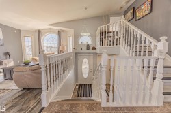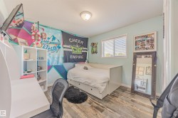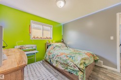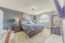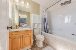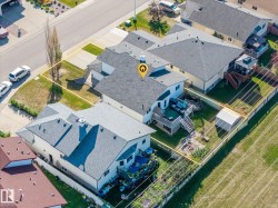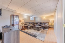 Roof 2023. Hot Water Tank 2025. Furnace & Humidifier 2018. Central Air Conditioning added in 2018. Other recent updates include newer flooring and toilets. HEATED double oversized attached garage. Welcome to this spacious & inviting bi-level in Mayliewan, perfectly situated on a quiet street backing a green space walkway. Soaring vaulted ceilings & an open floorplan. Large windows. Home blends style & functionality. Upgraded kitchen showcases cherry soft-close cabinetry, newer counters, Samsung SS appliances, a corner pantry, & a bright dining nook that opens to the deck. Main level includes two bdrms & a full bath, while the upper-level primary retreat boasts a walk-in closet & luxurious 5-pc jetted ensuite. Fully finished basement offers a large family room, 2 additional bdrms, 3-pc bath, & laundry. Enjoy a landscaped fenced yard, storage shed, & proximity to parks, schools, public transit & shopping—an ideal home for families seeking comfort and convenience. Taxes $4,465 for 2025. Lot size 466 sq m.