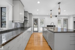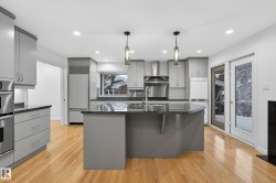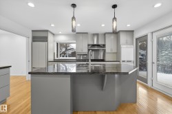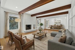 Updated home in a prime Laurier Heights/Buena Vista location steps to the river valley, Laurier Park, Buena Vista Park, and the Edmonton Valley Zoo. Offering 2,820 sq.ft. of total living space (incl. walkout level), this 2+1 bedroom home features a 2004 designer renovation on the main floor with an upgraded kitchen and two renovated baths, including a steam shower. Recent updates include fresh interior/exterior paint (2025), electrical upgrades (2025), new fencing (2025), LeafFilter system (2024), and central A/C. The walkout basement provides a large rec area, an additional bedroom, and potential to add more bedrooms if needed. Custom built-ins in the walkout level are included. Double attached garage and quick access to major routes, U of A, downtown, and nearby shopping. Some Photos have been staged