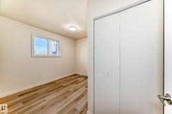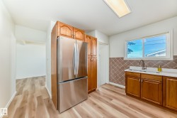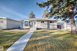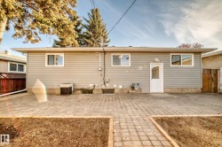 Location, Location - this perfect location backs onto Elmwood Community League & Elementary + Hillcrest junior hgh public school, H. E. Beriault catholic junior high. More schools a few blocks walk, Fantastic Family Neighborhood. Many More Upgrades with this Beautiful 5 bedrooms bungalow that has style, comfort, and functionality! The main floor features New Modern vinyl plank flooring throughout, a bright & spacious living area, corian counters kitchen with lots of upgraded cabinetry, a New Gorgeous 4 piece main floor washroom. The fully finished basement w New Carpet flooring has versatility w two additional bedrooms, super reovated 2nd washroom, large family room, extra storage. Enjoy the large double detached garage, private west fenced backyard, New Super Size Stone Patio ideal for relaxing or entertaining. More Upgrades of New Shingles + Eaves, New front yard landscape, newer windows. A Must View Property. This Quick Possession Renovated Home is Move-In Ready and has Great Value !!! NEW, NEW, NEW