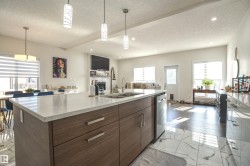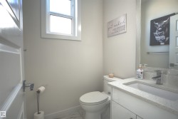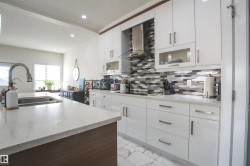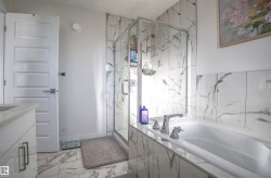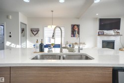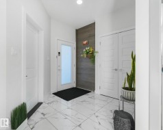 Beautiful & Spacious half-duplex with attached double garage with epoxy floor in Rosenthal. This 2000+ sq ft home features central air conditioning, water softener, vinyl plank flooring and 11’ ceilings. On the main: gas fireplace in the living room, bright dining area and gourmet kitchen with eat-up island, quartz countertops and corner pantry. The owner’s suite offers a 5-pce ensuite with soaker tub. Two additional bedrooms, 4-pce bathroom and huge bonus room complete the upstairs. Unfinished basement with separate entrance ready for a 2 bed suite or additional living space. Huge pie shaped backyard, fully fenced with deck (including gas line) and maintenance free front. Located near walking trails and ponds, 5 minutes to Costco, 10 to WEM, and with easy access to Whitemud Drive & Anthony Henday. A fantastic opportunity!
