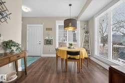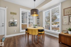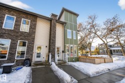 Stylish 2015-built corner unit of triplex in sought-after Bonnie Doon- just steps to Mill Creek Ravine’s scenic walking & biking trails. This bright 3-bedroom home offers an open-concept main floor w/chef-inspired kitchen featuring abundant cabinetry, generous counter space & a large island- perfect for gathering. The spacious dining area fits a full family table, while the inviting living room is anchored by a cozy gas fireplace. Upstairs you’ll find 3 good-sized bedrooms including a spacious primary retreat with a beautiful 3pc ensuite & upgraded closet by California Closets. A upstairs laundry completes the 2nd floor. ROOF TOP PATIO is your private oasis after a busy day or a place for gardening. Downstairs has 9ft ceilings & is fully finished (2020) with rumpus room, storage, 4pc bath & flex room. CENTRAL AC for warm summer days! Outside, you will love the sunny yard with an exclusive use patio overlooking the tree lined streets. Easy access to the single detached garage. Welcome home!