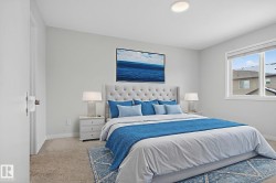 Welcome to this stunning duplex in the vibrant community of The Orchards, where modern design meets functional living. This exceptional 3-bedroom, 2.5-bathroom home boasts an expansive open-concept floor plan, perfectly complemented by oversized windows that flood every room with natural light. The south-facing rear yard ensures you enjoy consistent sunshine all day long—ideal for those who love a bright, airy atmosphere. Stay comfortable year-round with built-in A/C and enjoy the convenience of being within walking distance to the local pond and scenic walking trails. The exterior is fully landscaped, offering great curb appeal on a large, spacious, wide street that provides ample parking and a sense of openness. A standout feature is the potential for a side entrance, offering a seamless path to develop a future legal suite for guests or rental income. This home perfectly blends luxury, comfort, and long-term investment potential in one of the city's most sought-after areas.