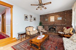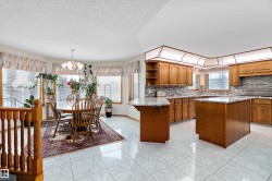 Beautiful and elegant. This custom built, brick exterior, 3840 sqft home located in the highly desired community of Carter Crest has so much to offer. Royal and Grand from the moment you enter, greeted by the wide open hardwood central staircase. Main floor features a cozy family room with gas fireplace, den/office, massive formal living room with high ceilings, large windows, and another gas fireplace, plus a formal dining area with chandelier. Massive kitchen and nook provide ample cabinetry and counter space. Patio door from the kitchen leads out to the new deck and massive backyard. Hardwood and tile flooring throughout the main level. Upstairs includes four bedrooms plus a bonus/loft area. Primary bedroom with five-piece ensuite and walk-in closet. Hardwood floors throughout the upstairs level. Updates include roof replaced approx. 6 years ago a new furnace (2025) and new backyard deck. Double attached heated garage. Massive private backyard, south-facing and backing onto green space.