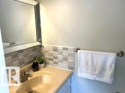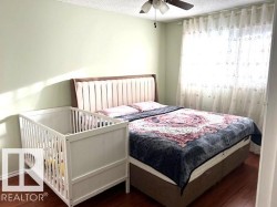 Bright and Spacious 2 -Storey end unit offers 3 Bedrooms and 1.5 bathrooms in a quiet, kept complex. The refreshed kitchen features ample cabinetry and generous counter space, opening into a separate dining area and a comfortable living room. A large window overlooking a sunny West facing private yard, with natural light. Upstairs you will find a generously sized primary bedroom with a large closet, along with additional well -proportioned bedrooms and a full 4-PIECE bathroom. The Fully Finished Basement provides extra living space- perfect for a family room, home office, or play area. Lots of storage; assigned parking. 5 minutes walk to WEM and other facilities: Schools, parks, playground, Hospital and new coming LRT. Unit has new laminate flooring, paint, & doors. Seller installed second main shut-off valve in the basement. The property shows very well and is move-in ready.